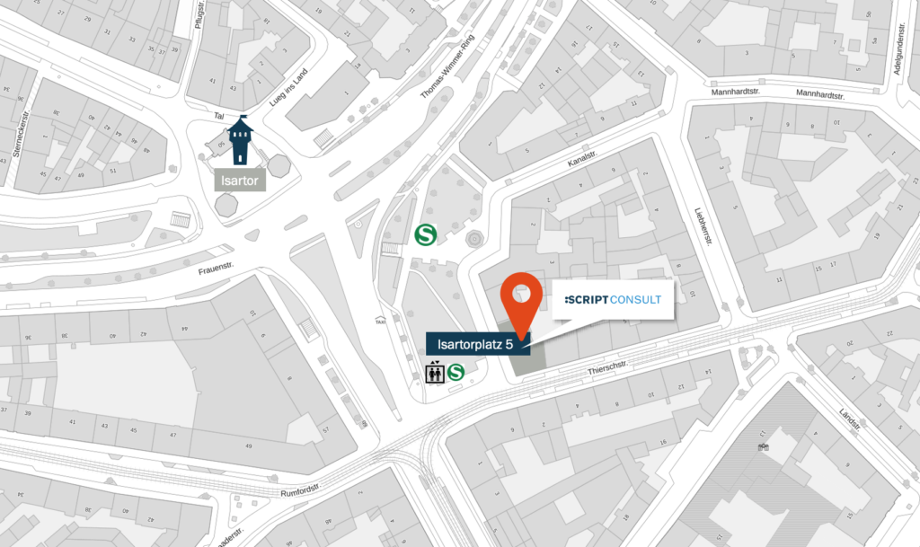 Kontakt Haben Sie Fragen? Wir helfen Ihnen gerne weiter. Linkedin Instagram SCRIPT Consult GmbH Isartorplatz 580331 München+49 (89) 242 10 41-0 info@script-consult.de Kontaktieren Sie uns